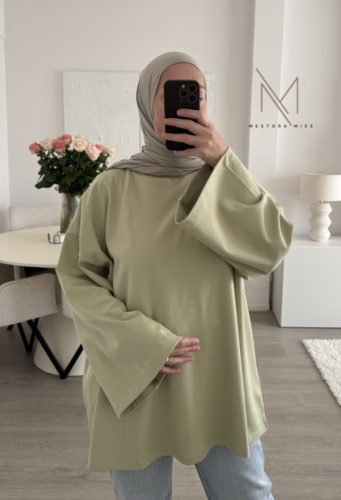 De basic t-shirt met lange,wijde mouwen wat een echte must-have is. Dankzij de tijdloze pasvorm is het makkelijk te combineren.