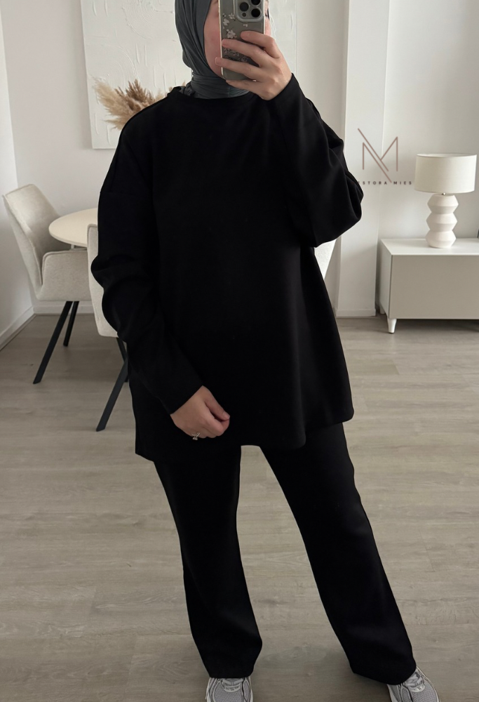 twinset co-ord set zwart instant hoofddoek bamboo jersey