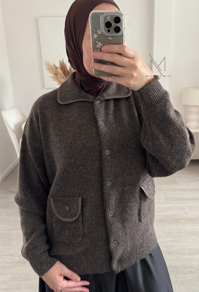 Geef je outfit elegante touch met dit donkerbruine vest. Het vest is afgewerkt met subtiele leren details langs de kraag en de zakken, wat zorgt voor een leuke uitstraling. De kleine zakken voegen niet alleen stijl toe, maar maken het vest ook praktisch in gebruik.