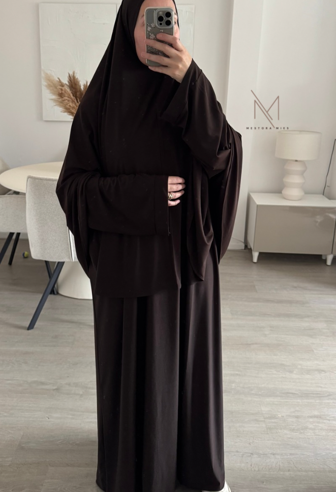 Ontdek onze khimaar en abaya set, gemaakt van jersey stof die heerlijk comfortabel draagt. De soepele stof valt mooi!